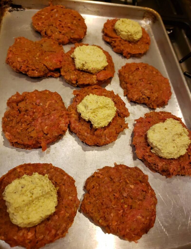 - Top with the remaining patties and press the edges to seal.