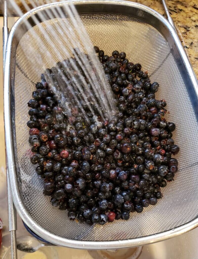 Place all the blueberries in a colander and rinse well.