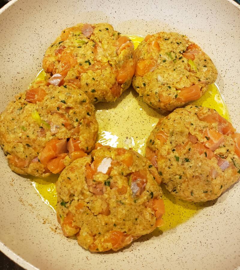 Olive oil for frying the salmon burgers