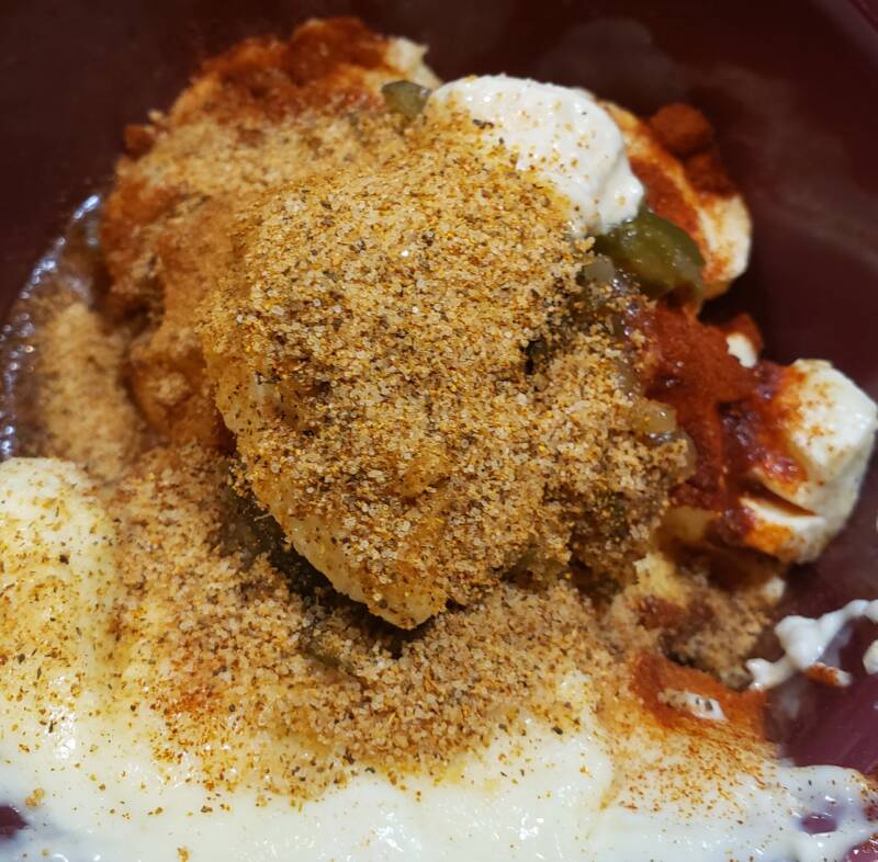 In a separate bowl, combine the mayonnaise, lemon, seafood seasoning, cayenne, hot sauce, salt and pepper. Mix until thoroughly combined. Pour the sauce over the salmon mixture. Add the breadcrumbs and a little more salt and pepper.
