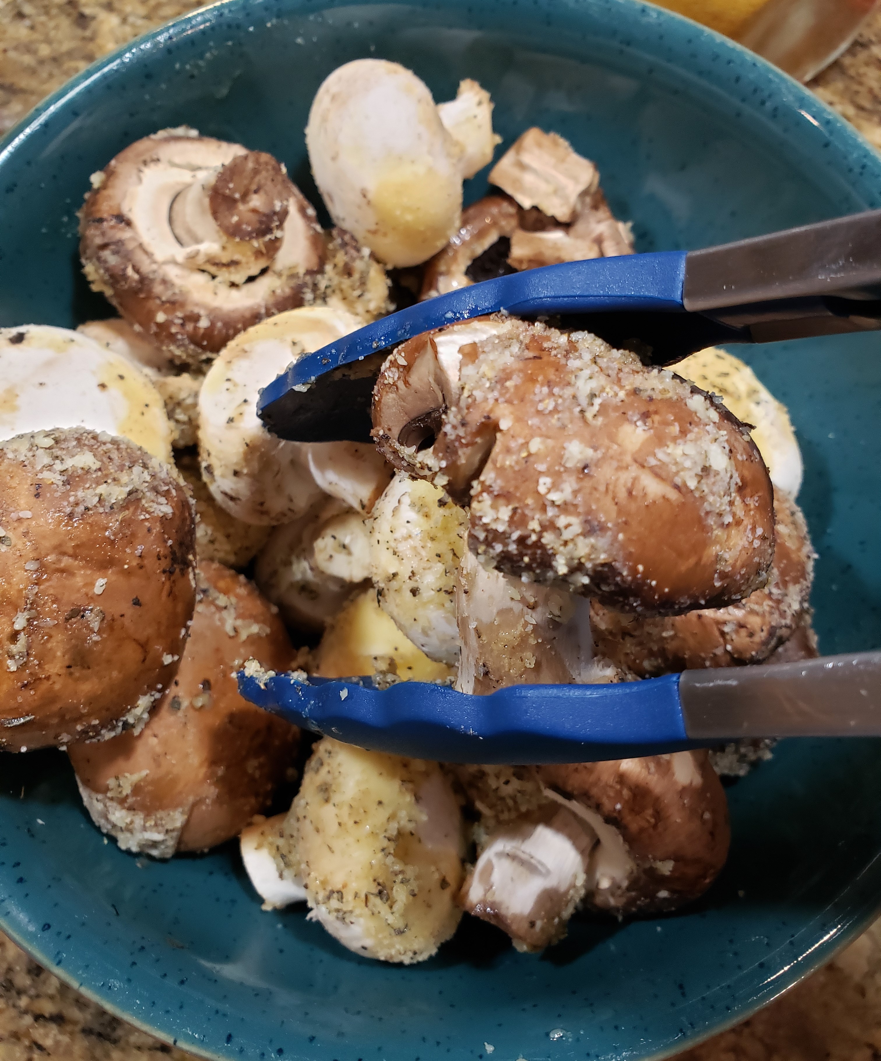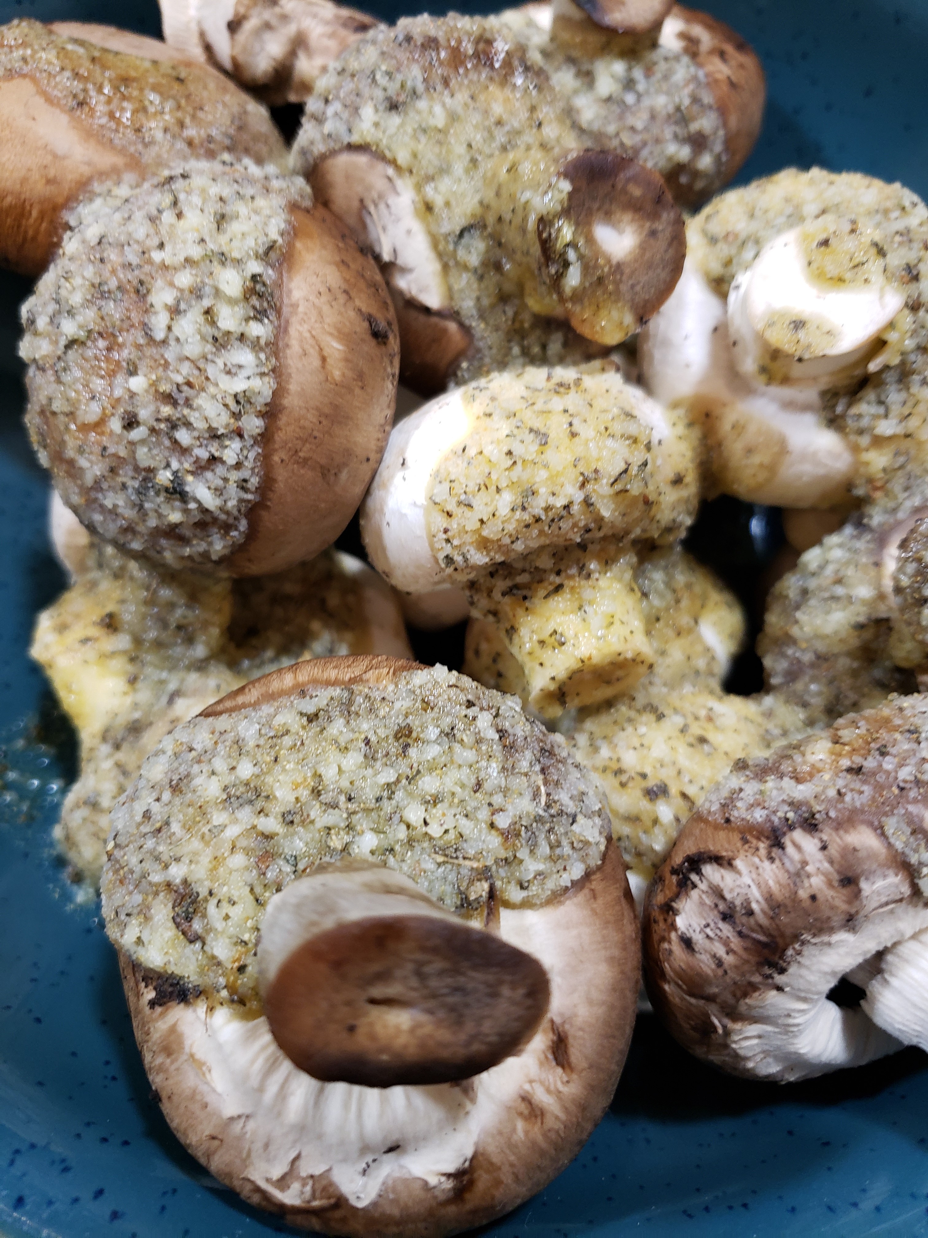 Roasting the mushrooms brings out a somewhat meaty flavor to the mushrooms, and the topping adds a slightly toasty crunch to the texture of this dish. These mushrooms make a lovely side dish for steak or roast beef. Rather than serving on the side of a steak, you could serve the mushrooms on top. How fancy would that be!
