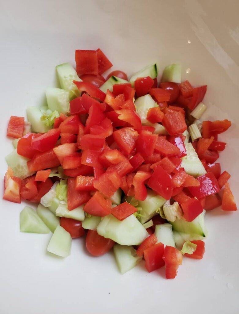 To make the cucumber relish, combine the chopped cucumber and chopped tomato in a bowl. Stir in fresh chopped parsley. Drizzle with olive oil and sprinkle with salt and pepper. Mix well.