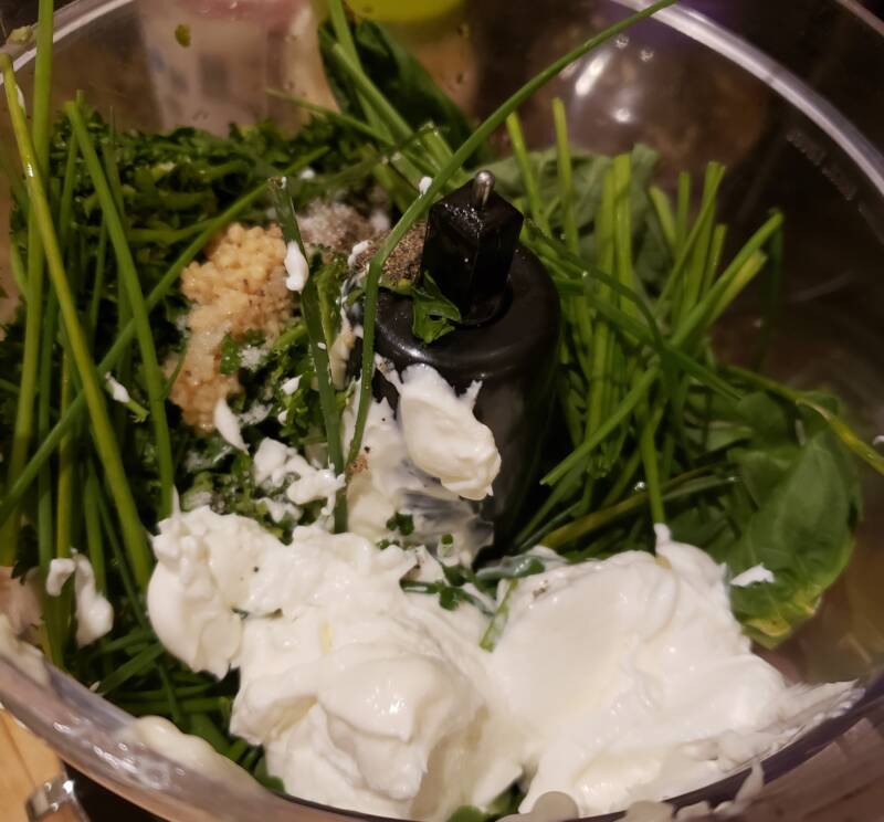 There used to be a bottled salad dressing made by Seven Seas (I think) called Green Goddess Dressing. It was so good! That was the salad dressing of choice when I was growing up. I loved to dip red radishes in it when I was a kid. The whole family loved it! Sadly, I don’t think it is available anymore. I craved it the other day, so I devised a recipe to make my own. I think I got it fairly close. I’m going to go back to dipping my radishes in it.
