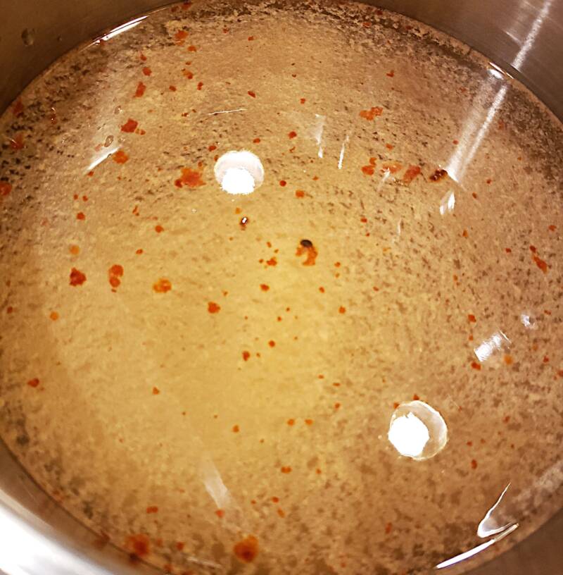 I also make the brine the day before so it has time to cool. In a pot, combine the water, vinegar, and pickling salt to a boil. Turn off the heat and cool overnight.