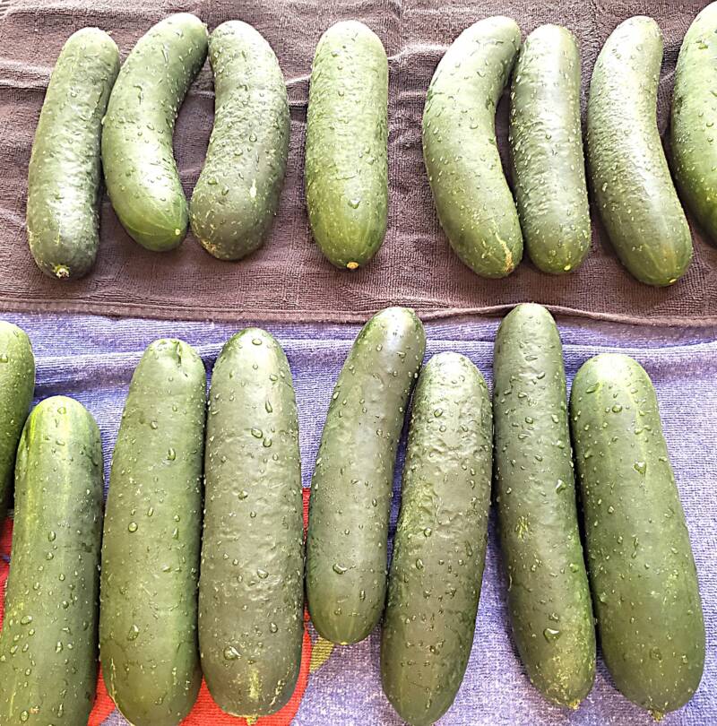 6 lbs. cucumbers, washed, dried and sliced