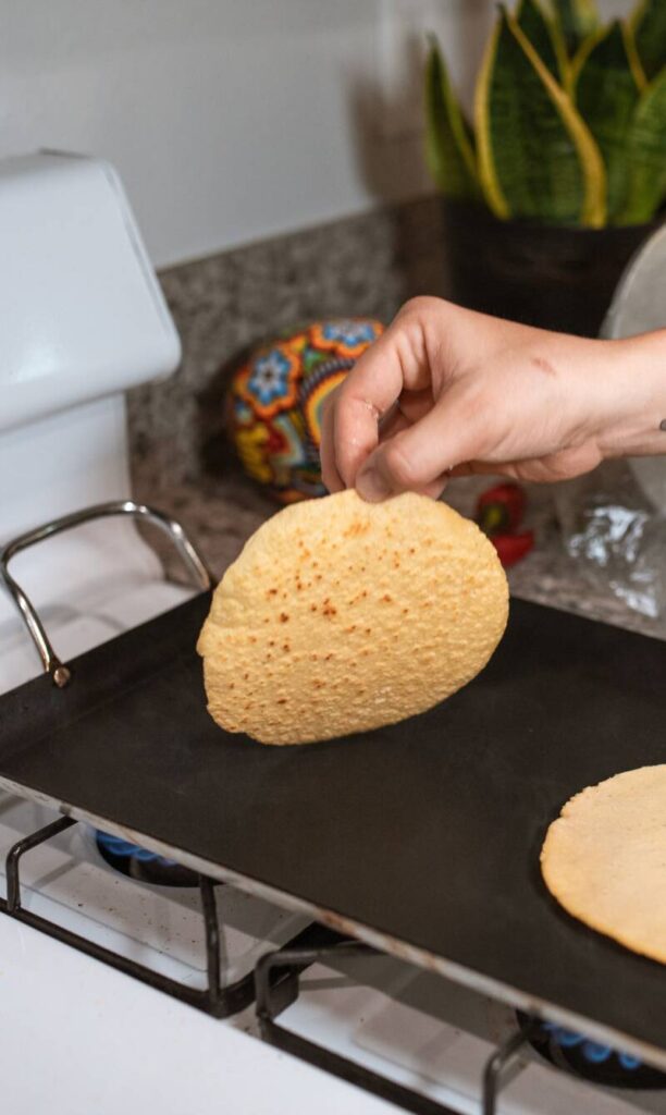 - Fry the tortillas in oil.