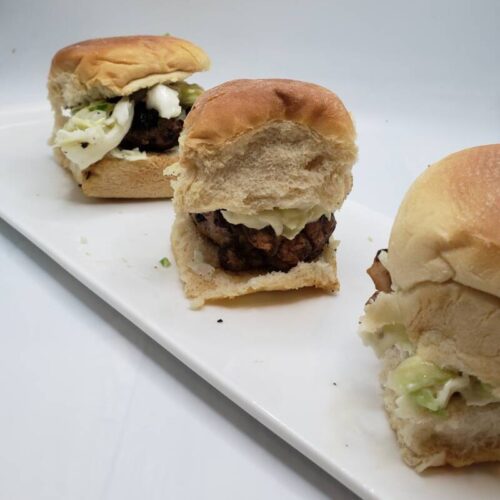Sliders are a party favorite! The subtle spicy flavor elevates the slider patties to the next level. They are easy to make and fun to eat. Make the patties ahead of time to make this delicious meal easier. The patties can also be stored in the freezer to use on a night when dinner threatens a take-out run.