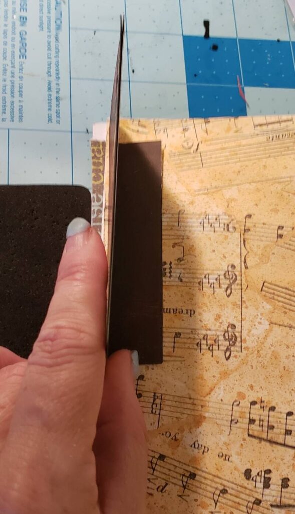 - Cut a 2″ x 4″ piece from the solid cardstock for the hinge.