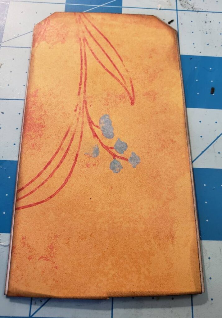 Ink the edges around the tags. Make sure the ink shows on both sides. You will need to decorate both sides of the tag. The third tag door will have a window, so we will do that next.