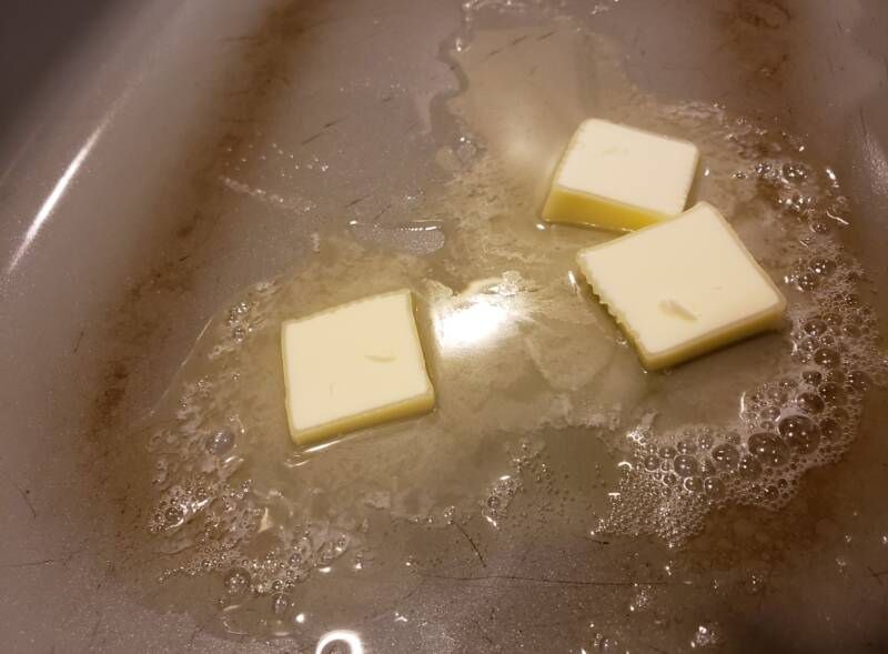 In a large skillet, melt the butter.