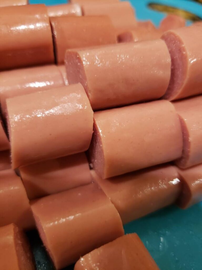 - Press down on the hot dog using a small spoon to submerge the hot dog segment.