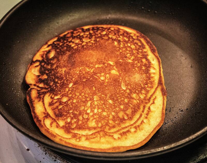 - Flip the pancake to cook the other side.