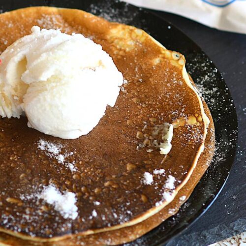 - Serve the pancakes hot with a dollop of the cinnamon butter on top.