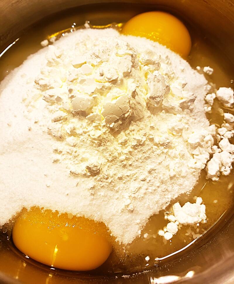 - Combine the Swerve, cornstarch, salt and eggs in a saucepan, .