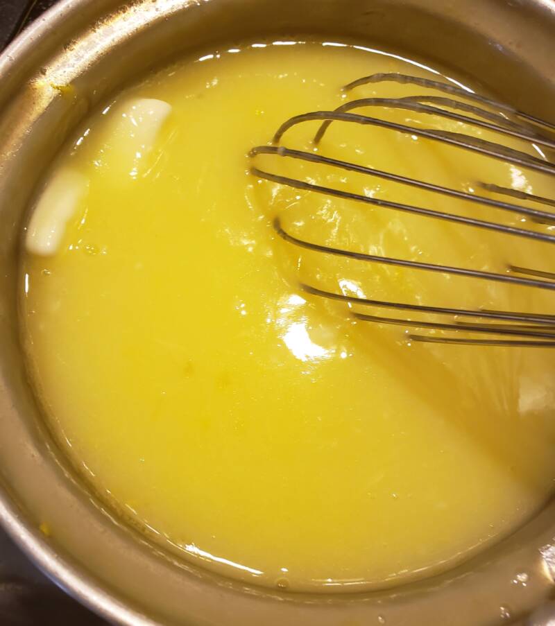 Whisk in the butter until melted. Continue stirring until the sauce has thickened.