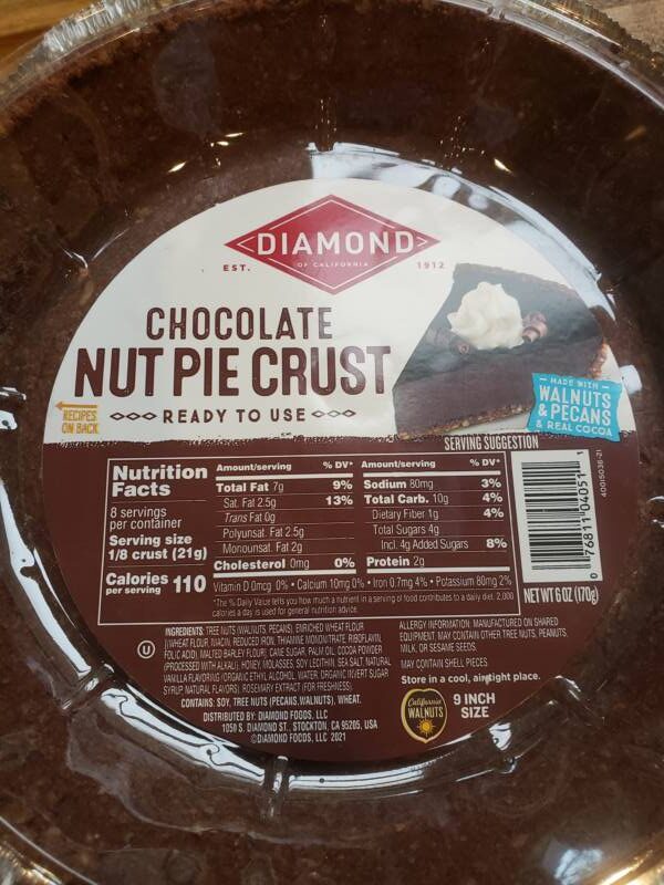 - (If you are using a premade crust, you can skip this step) Place crust ingredients into a food processor. Process until incorporated and press the mixture into a pie plate.