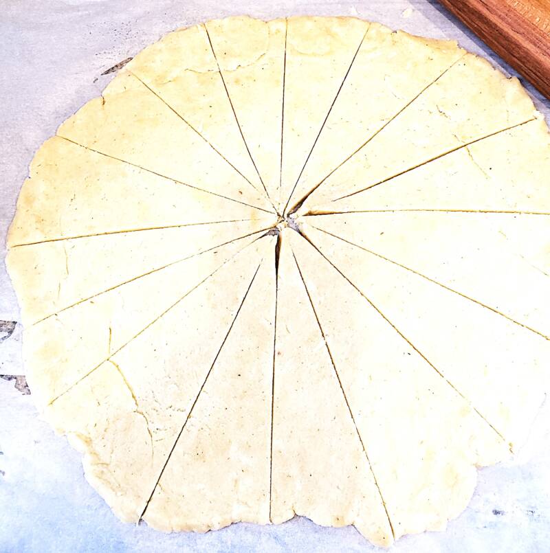 Spray your rolling pin with cooking spray. Roll the dough into a perfect circle on a large sheet of parchment paper. Roll the dough as thin as you can get it. The edges will not want to form a perfect circle, so smooth and pat the edges to form a circle. Cut the dough circle into triangles with a pizza cutter or knife, like a pie, but with twice as many slices. If you are using crescent roll dough, you must separate the triangles along the serrated edges.