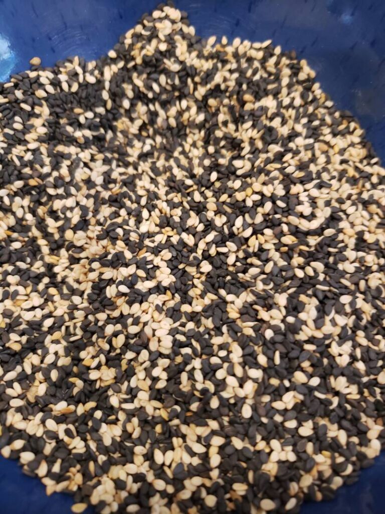 - 1/4 cup black sesame seeds (if black sesame seeds are unavailable, substitute another 1/4 cup white sesame seeds.)
