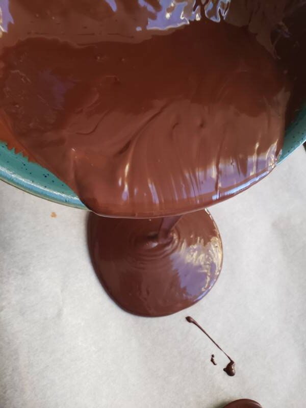 Pour the chocolate onto a baking sheet lined with parchment paper. Spread the chocolate out until you have achieved a thin layer.