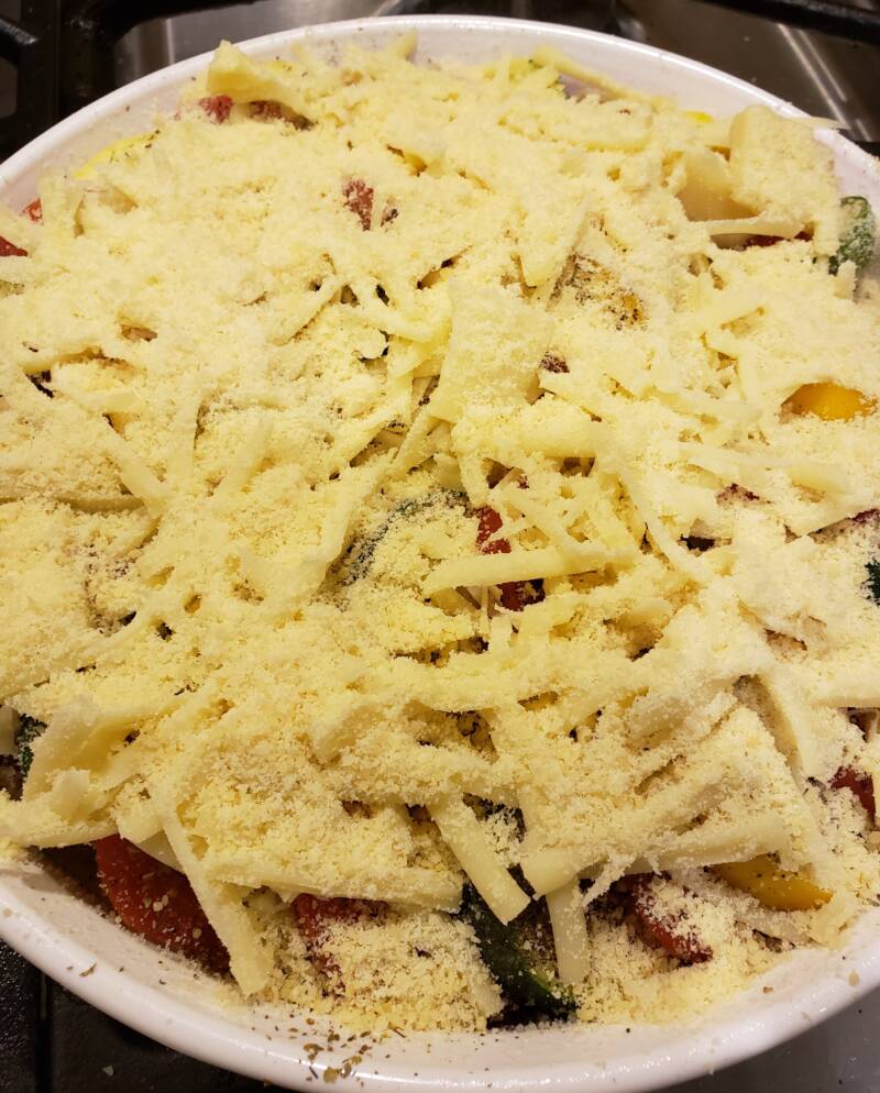Remove from the oven and sprinkle the top with Gruyere cheese and Parmesan. You can use Swiss cheese if you can’t find Gruyere cheese in your grocery store. Return to the oven for 10-15 minutes to melt the cheese.
