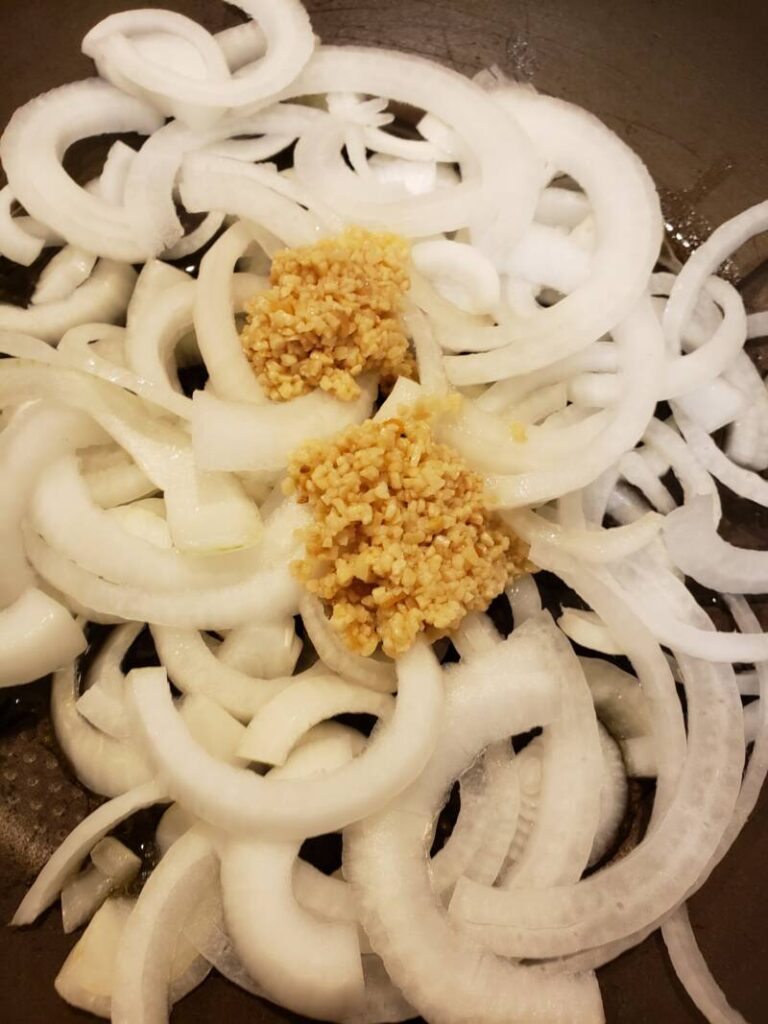 Spray a tart dish with cooking spray. When all the vegetables are sliced, this dish comes together quickly. I meal prep the vegetables earlier in the week for easy assembly on the day of preparation. Sauté the onions and garlic in some butter until they begin to caramelize.
