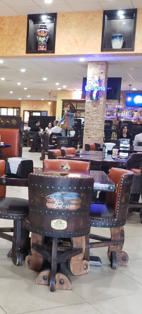 The staff is friendly and efficient. When I arrived during the lunch crowd, the restaurant was very busy, but we only had to wait a couple of minutes for a table to open up. From the moment we walked in the door, we were greeted with a welcoming attitude from the staff. The decor is fairly typical of a Mexican restaurant but stylish with heavy wood tables and chairs. The restaurant is lined with windows facing out into the Mall area. The waitress was quick to bring our beverages and easily answered our questions about menu selections.