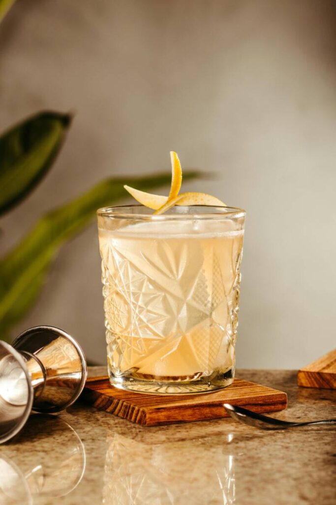 Garnish with a twisted lemon peel. CHEERS!!