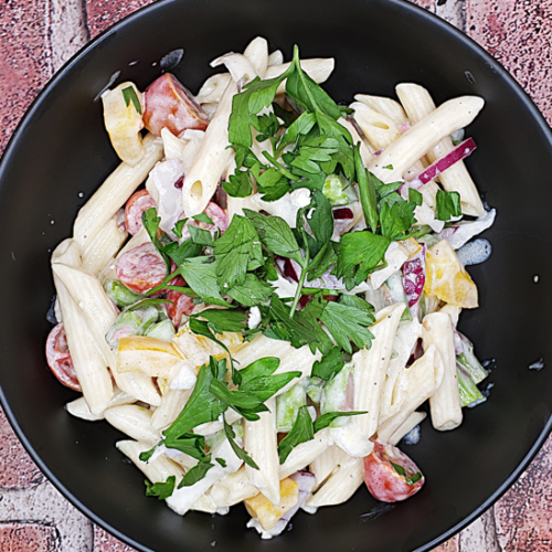 - 2-1/2 cups low-carb penne pasta