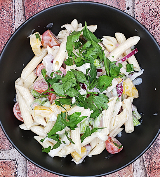 - 2-1/2 cups low-carb penne pasta