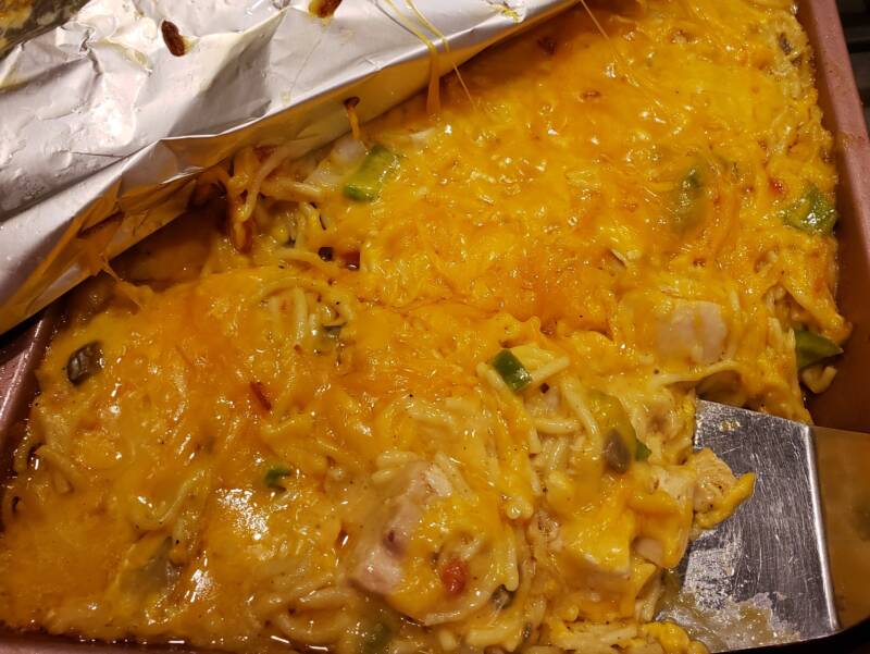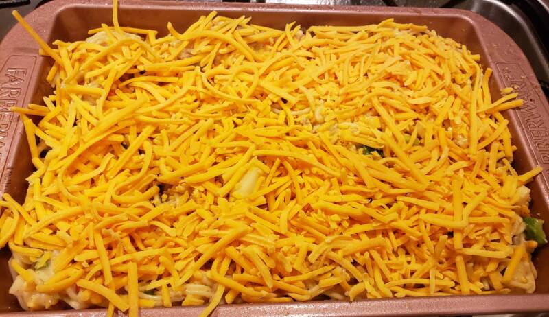- Cover with foil and bake at 350 for 30 minutes or until the cheese is melted and the casserole is bubbly.