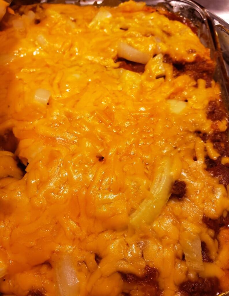 I like to sprinkle some raw onions on top of the casserole as a garnish because I like the freshness and bite of the raw onion. That’s how I like a regular chili dog. You can pile on any toppings you normally eat on your chili dog. Serving suggestions: coleslaw, fried or roasted potatoes or salad