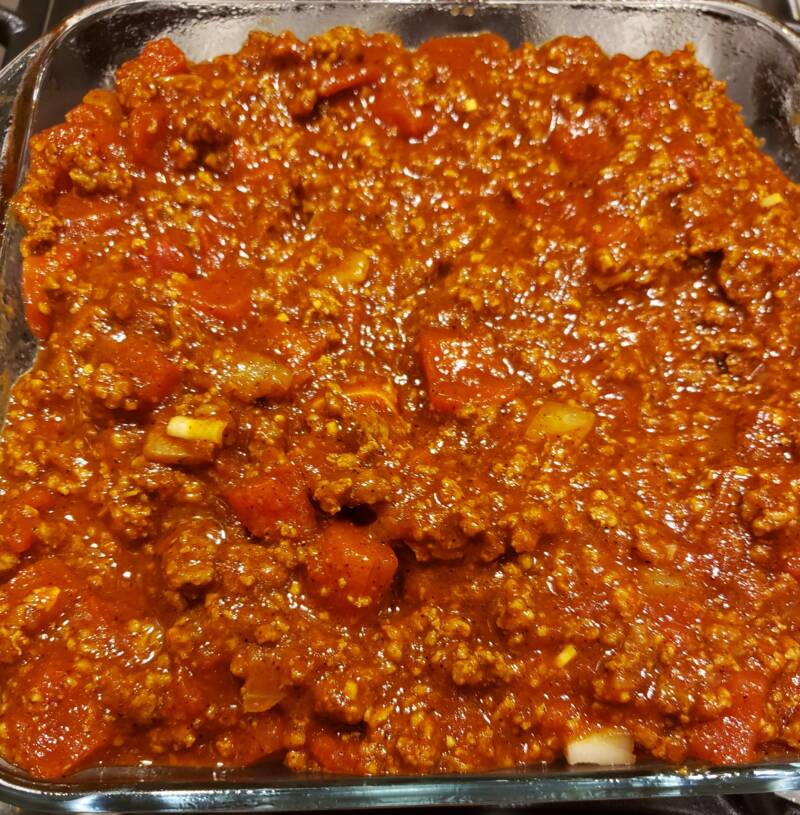 Add the spices, Swerve, Worcestershire, tomato sauce, tomato paste and water. Stir to combine and simmer for 30 minutes. Lay out the hot dogs in the bottom of a square casserole dish.