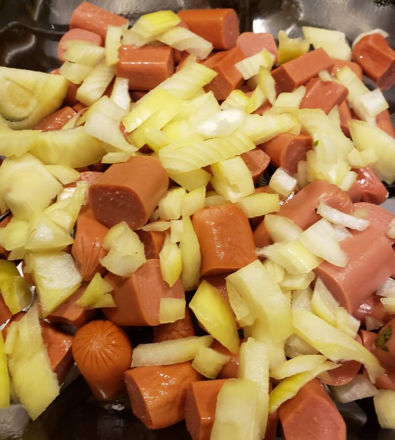 8 large hot dogs (I used beef hot dogs), each cut into 4 pieces