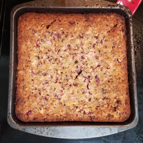 I love baking it in an 8×8-inch pan, which gives it the feel of cozy snack bars or easy-cut dessert squares. Keep a bag of fresh cranberries tucked away in the freezer, so you can whip up cranberry treats any time of year.