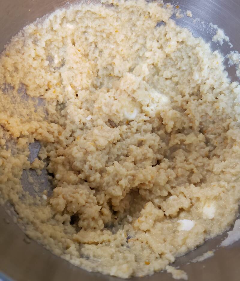 In the bowl of a mixer, cream the shortening, cream cheese, vanilla, orange zest and Swerve. Add the eggs and mix, scraping the sides of the bowl.