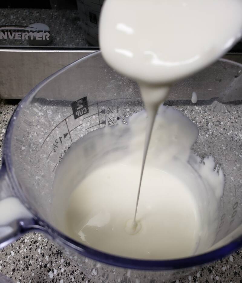 - While the bread is cooling, mix together the powdered Swerve, cream, vanilla and lemon juice.