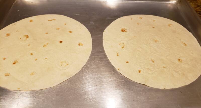 Spray a griddle with cooking spray. Make one quesadilla at a time. If you have a large griddle, you can make two or three at a time.