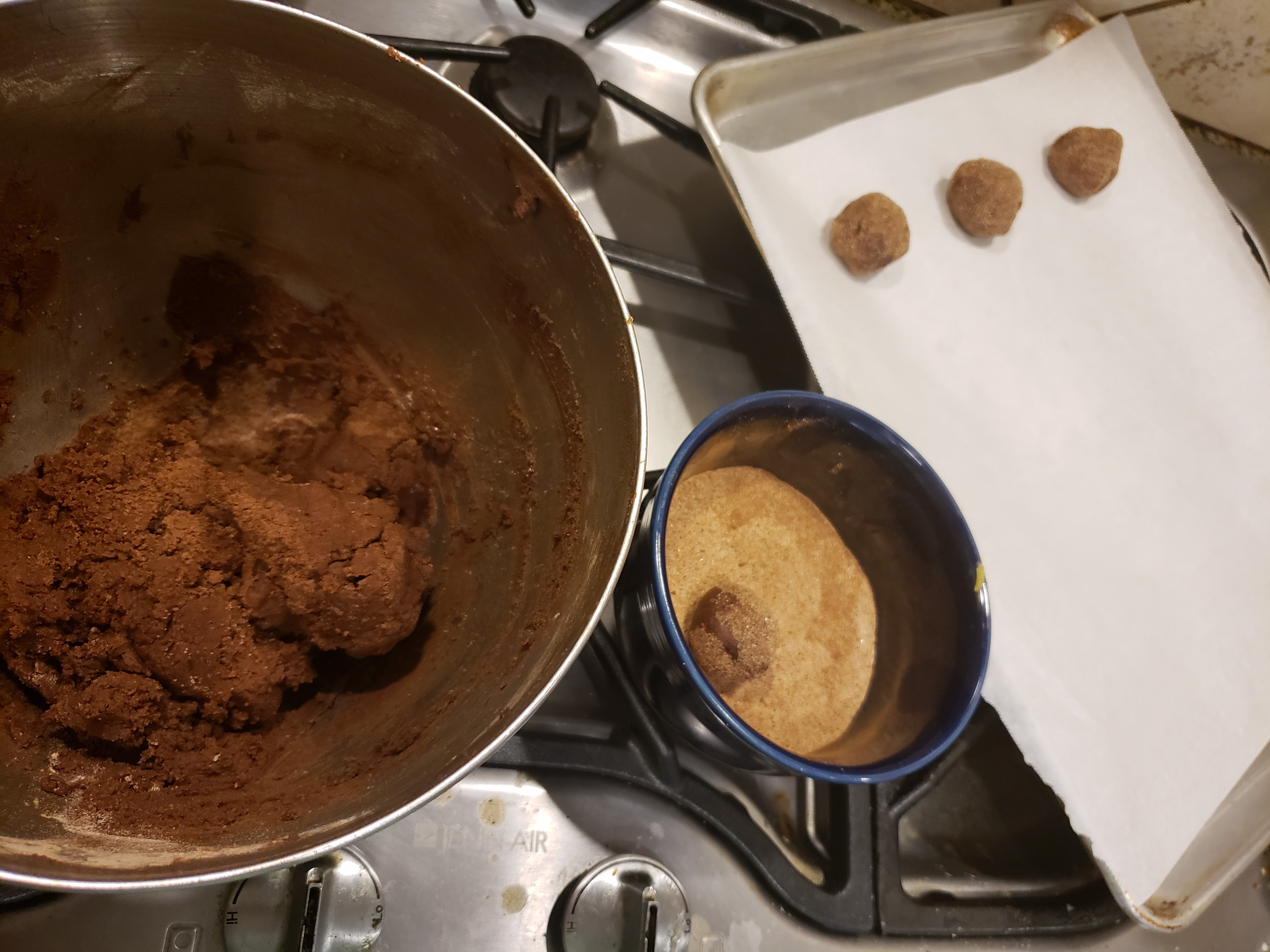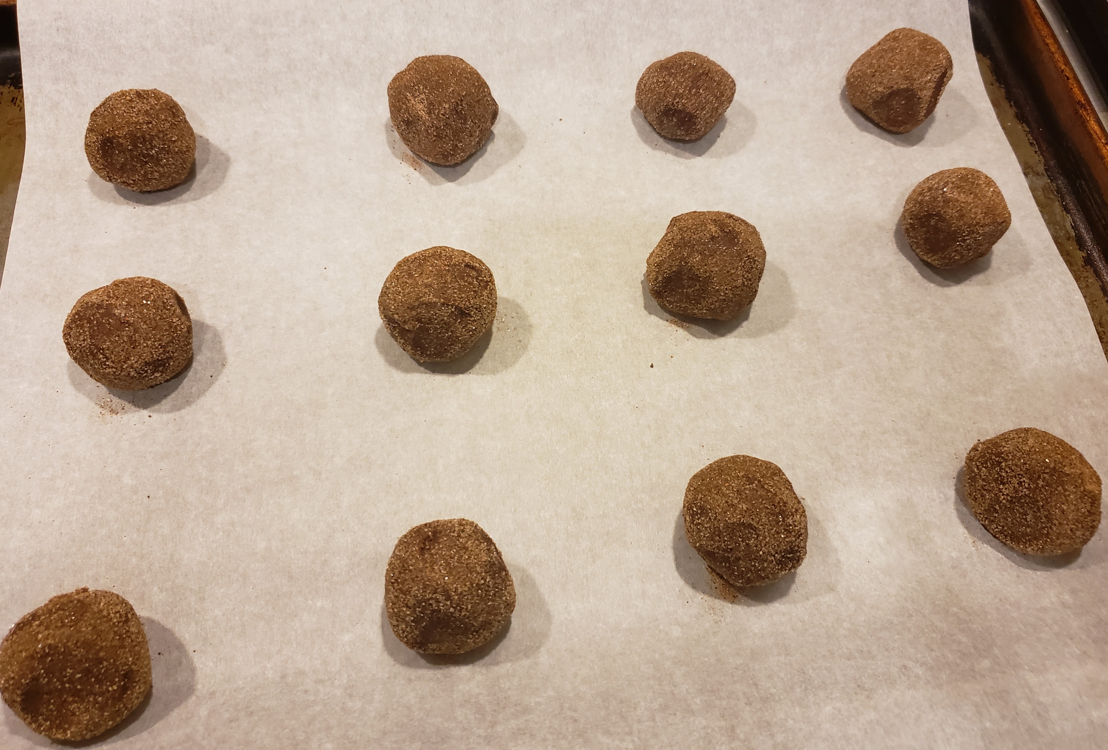 Preheat the oven to 250 degrees. Roll about a teaspoon worth of the dough into balls and roll in the cinnamon sugar. Place on a baking sheet lined with parchment paper.