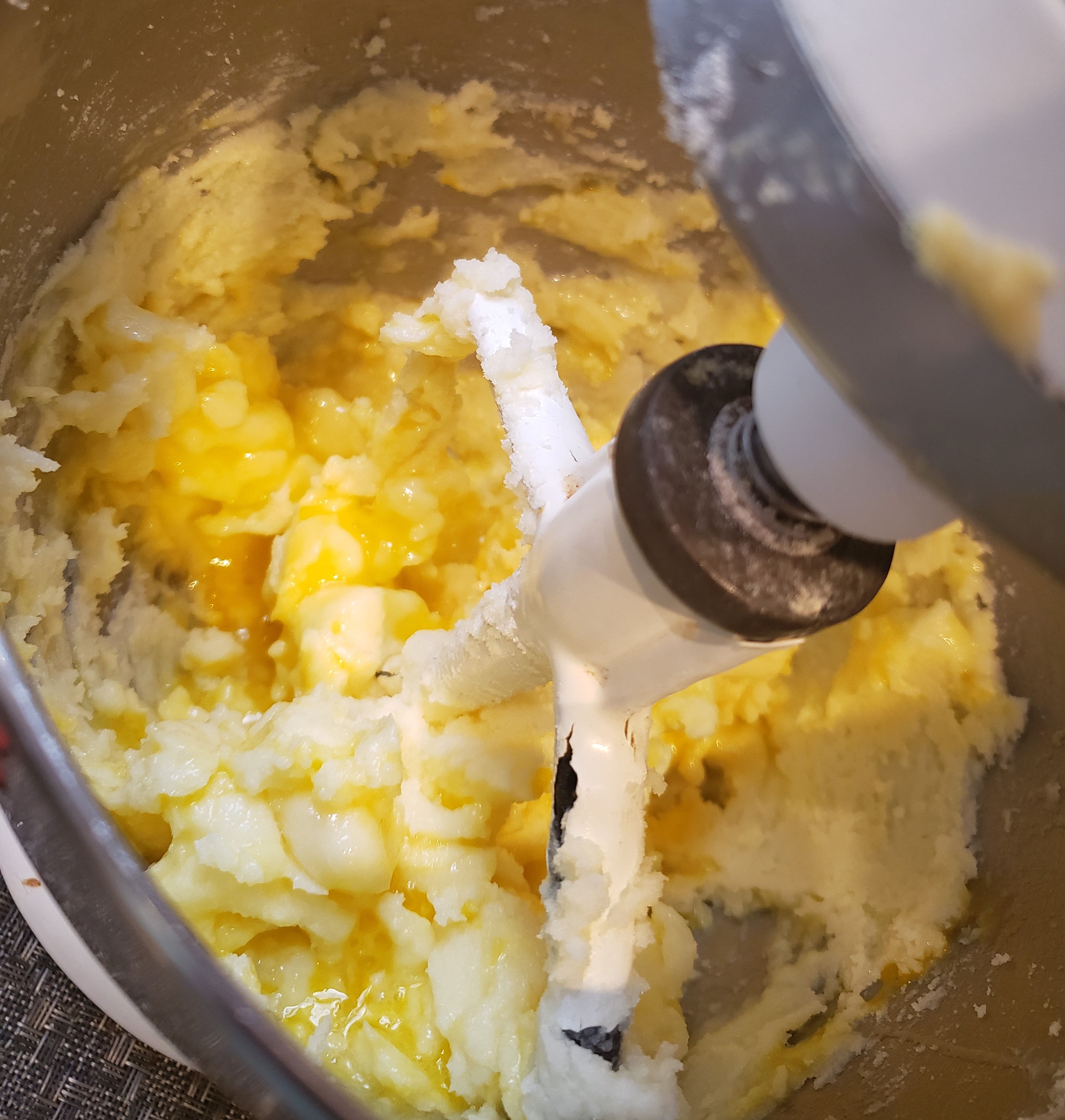 In the bowl of a mixer, combine the white sugar, brown sugar and butter. Mix until well combined. Add the vanilla and eggs. Mix until well combined, scraping down the edges if necessary.