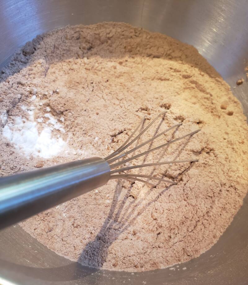 In a separate bowl, combine the cream of tartar, cocoa, 1/2 teaspoon cinnamon, cayenne, chili powder, flour, salt, and baking soda. Stir with a whisk until the ingredients are combined.