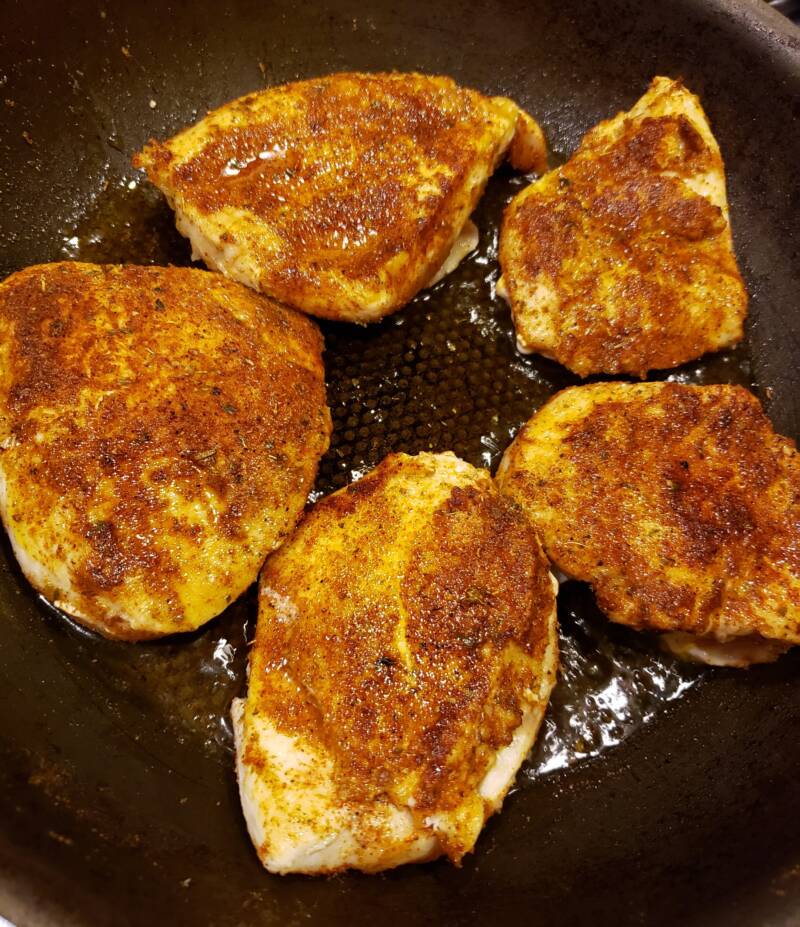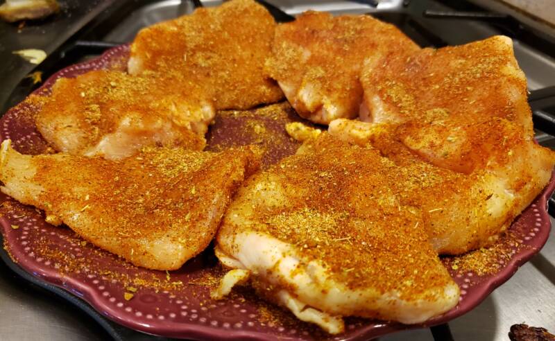 - Season the chicken with the spice mix.