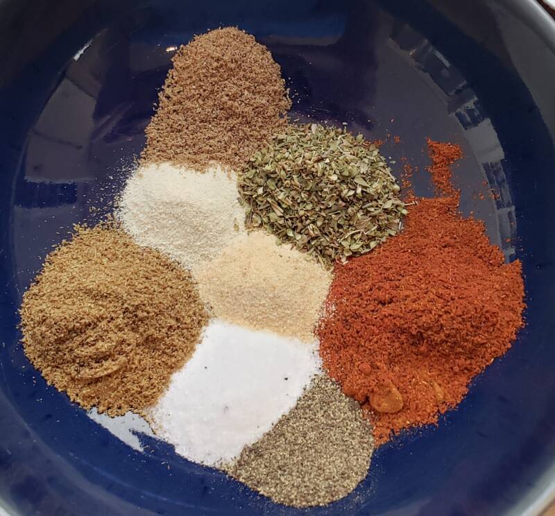 - In a small bowl, mix paprika, salt, pepper, onion powder, cumin and garlic powder.