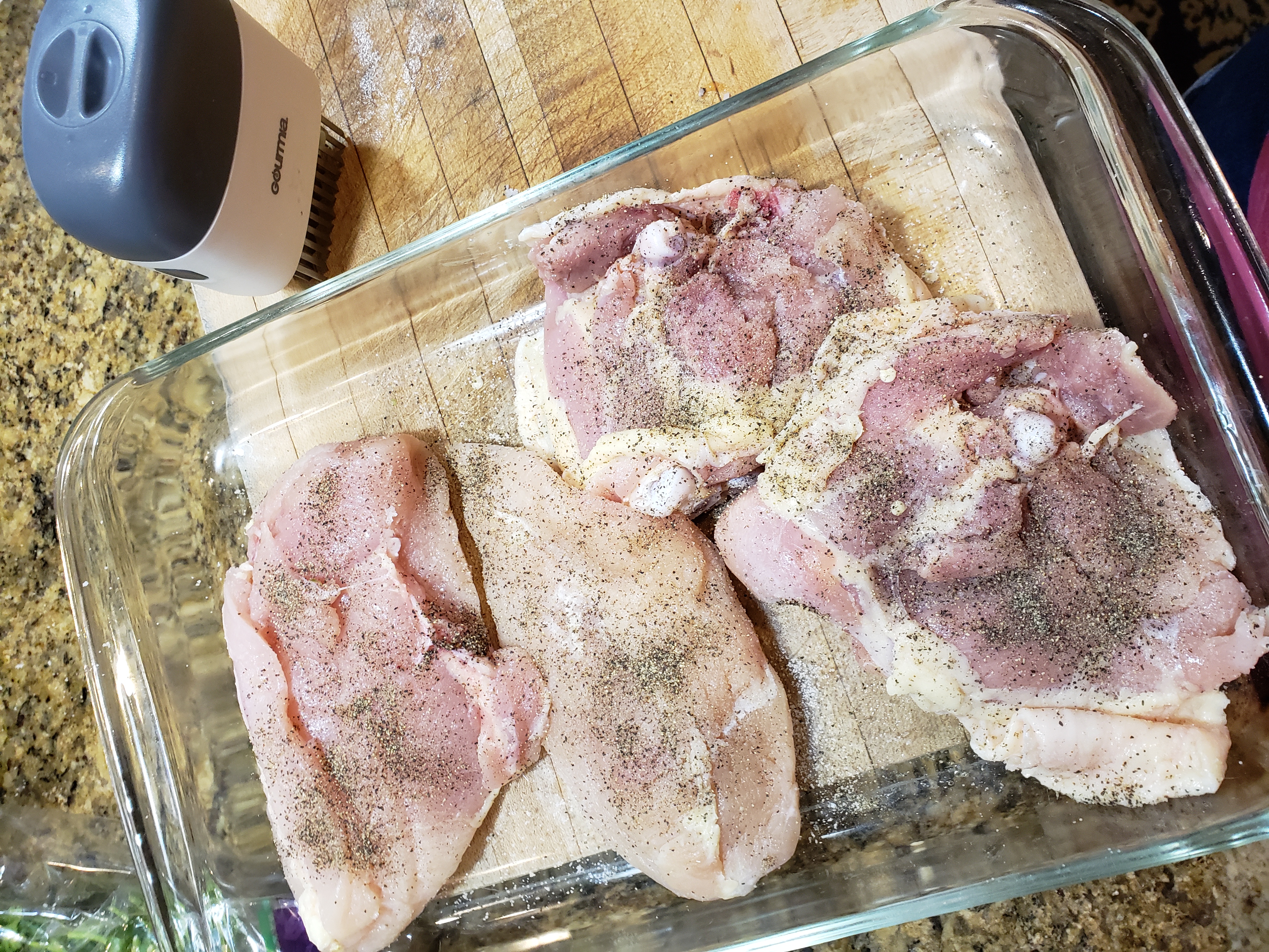 3 large chicken breasts, sliced into cutlets for a total of 6 breasts or boneless chicken thighs