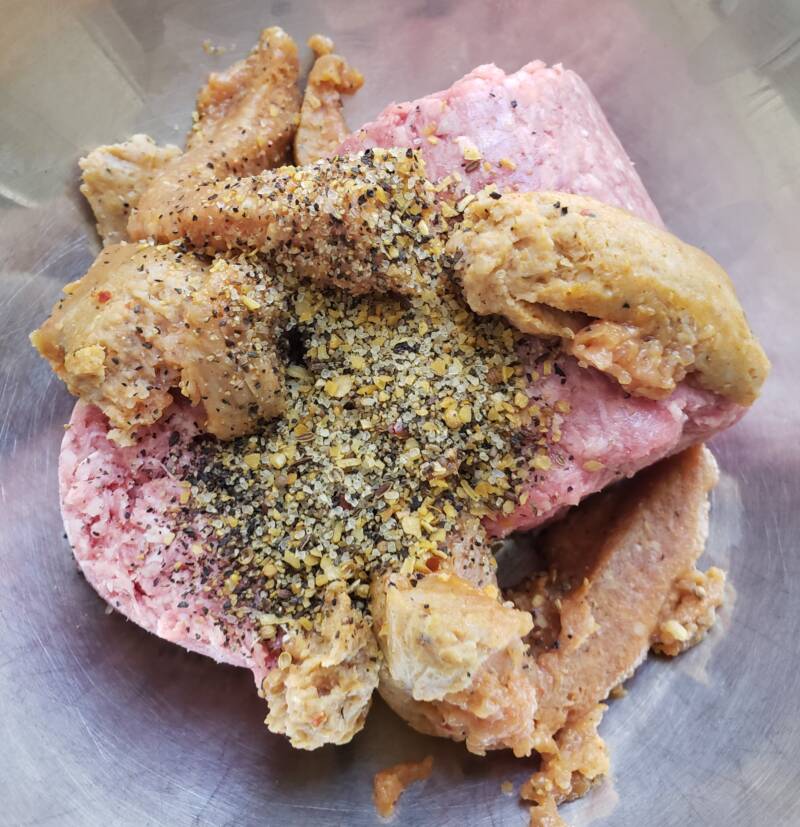 - In a bowl, combine the ground beef, Italian sausage, Montreal steak seasoning and Italian seasoning. Mix well.