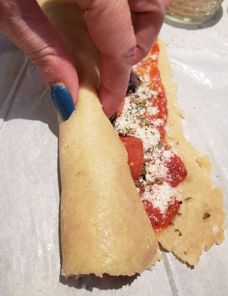Roll the fathead dough into a rectangle.