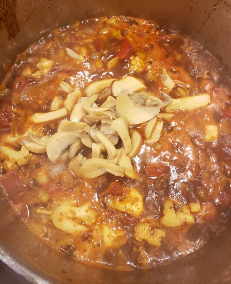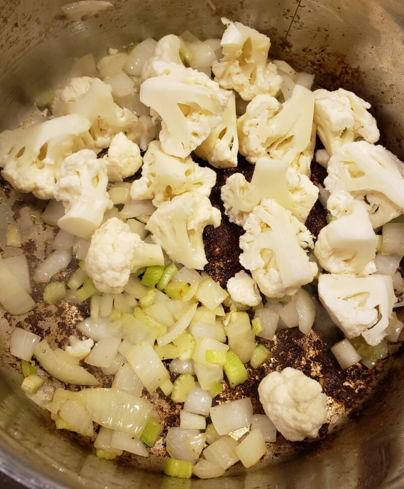 Add the cauliflower to the pan and cook until it is crisp-tender. You can use potatoes instead of cauliflower if you prefer.