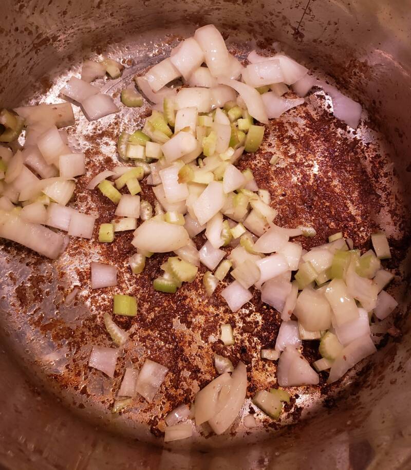 - Saute the celery and onion in the same pan. Add a little more olive oil if needed