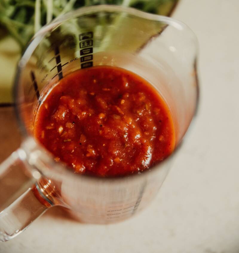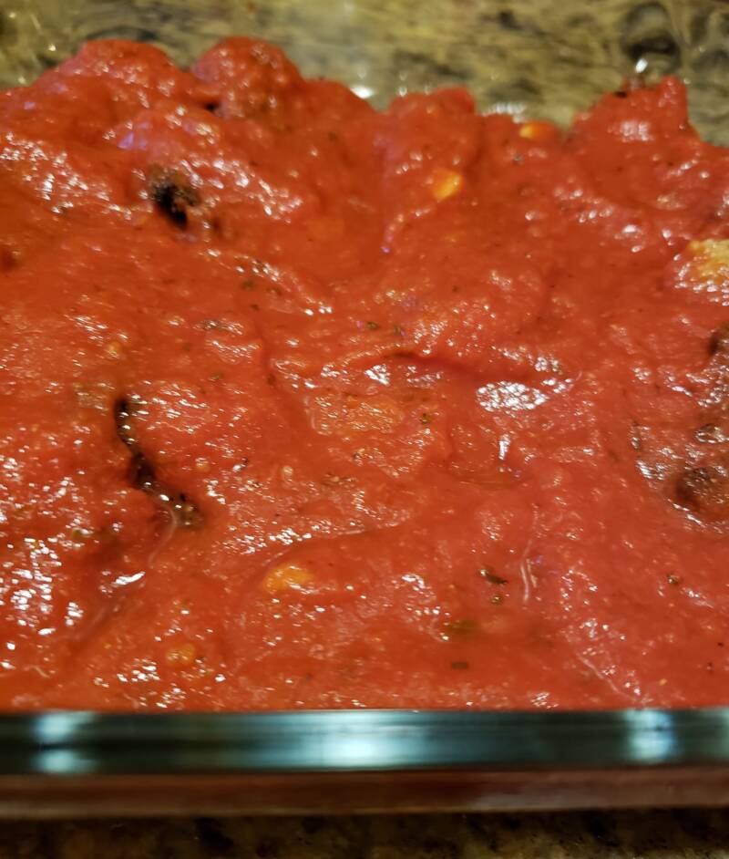 - Place a small amount of jarred spaghetti sauce on the bottom of the dish. If you have any leftover homemade sauce, you can use that.