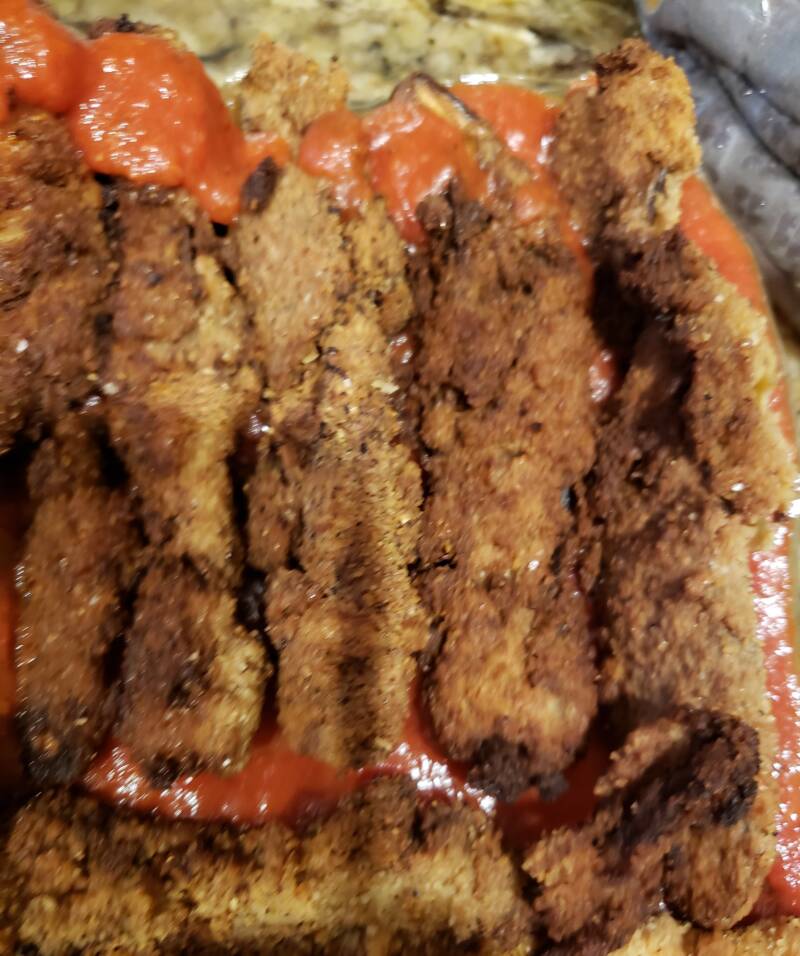 I always make extra fried eggplant when I plan that on my menu plan. Click here for my Keto Fried Eggplant recipe. What can you do with all that extra eggplant? Well, Eggplant Parmesan, of course! Eggplant Parmesan is a good way to use any Fried Eggplant leftovers. I always make a very small 8×8 pan of Eggplant Parmesan because it is so rich. Added in that nowadays when I make it Keto, a little goes a long way. Even as rich as it is, Eggplant Parmesan is delicious!