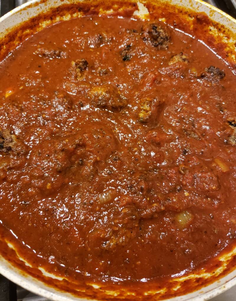 Add the meatballs back to the sauce and reduce the heat. Cover and simmer for 1 hour.